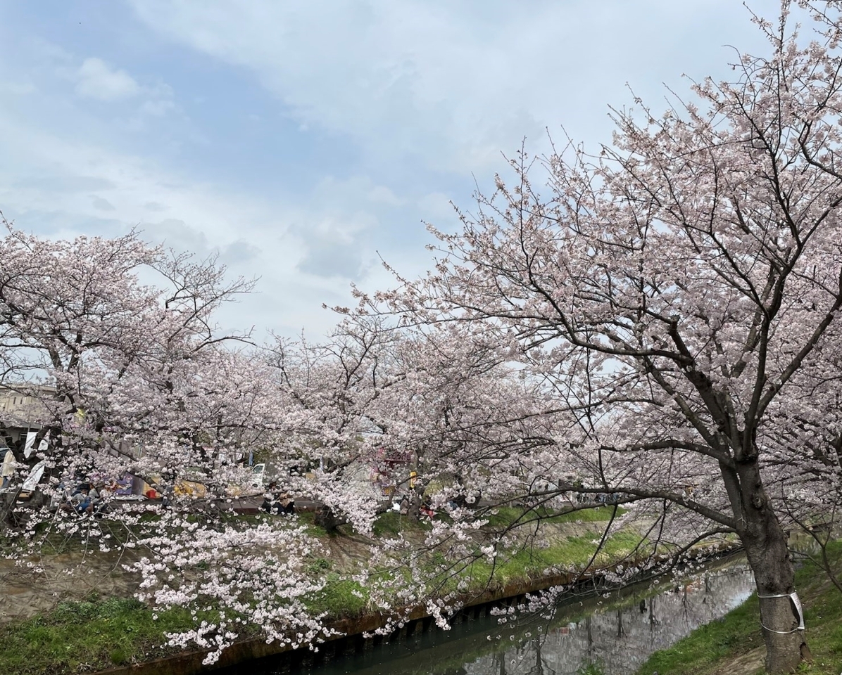 ソメイヨシノが満開でした! 水面に花吹雪が散り、風情があってキレイでしたよ。